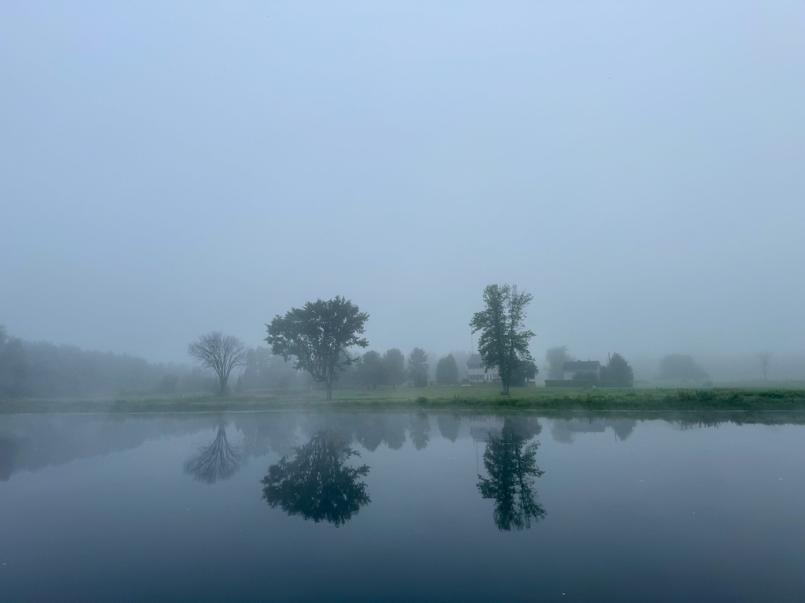 Fog delayed our departure the next morning, so I embarked on what had become my daily ritual: spider purge. They seemed particularly bad here and I had about had it with these guys and their webs spun in every nook and cranny, leaving green spots of spider poop everywhere. Having previously tried to relocate them to the dock or shoreline, I had resorted to knocking them off into the water and making them swim for it. I flicked one guy off the bow and watched him scurry along on the water’s surface – and get eaten by a fish who came up from below! Gotta admit it was more than a little satisfying. It was ‘circle of life’ meets ‘get off my boat! ‘